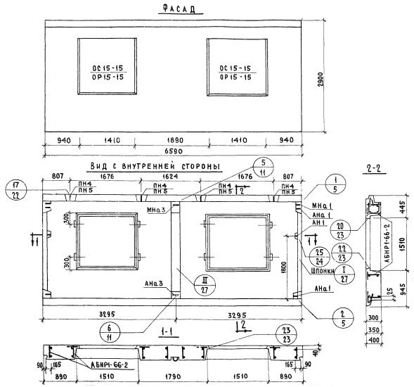 НР1-66.29.3-2 Наружная стеновая панель рядовая по Серии 1.132-1.