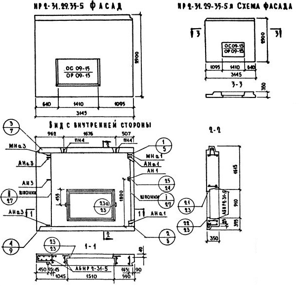 НР2-31.29.35-5л   Наружная стеновая панель рядовая по Серии 1.132-1.